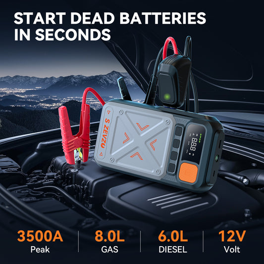 B29L 10 in 1 Car Jump Starter with Air Compressor, 3500A 150PSI Jump Box Battery Pack(8.0 Gas/6.0L Diesel), Portable 12V Jump Box with Cordless Auto-Shutoff Tire Inflator, USB Ports, LCD Display