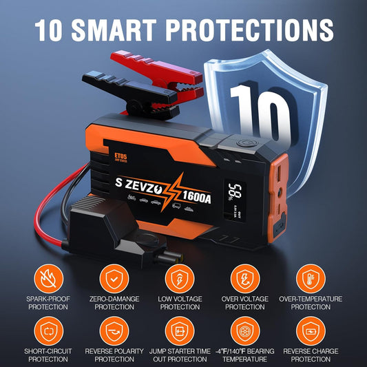 ET05 Jump Starter 1600A Portable Car Jump Starter Battery Pack for Up to 7.2L Gas and 5.5L Diesel Engines 51.8Wh 12V Jump Box with USB Ports, LCD Display and LED Light