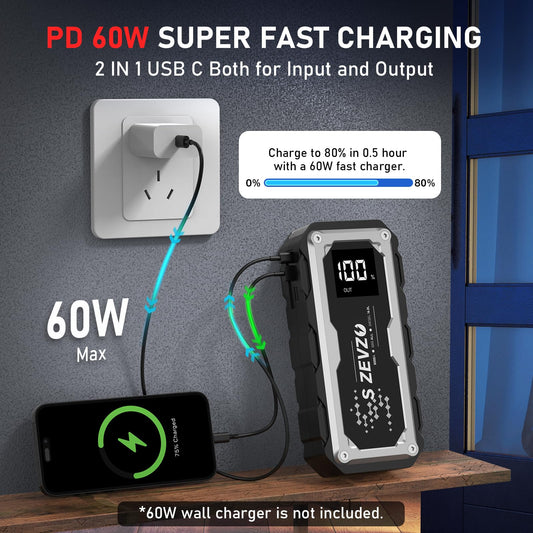 S ZEVZO 12V Portable Car Jump Starter 1000A Battery Booster